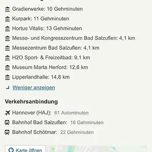 Die wichtigsten Sehenswürdigkeiten von Bad Salzuflen wie Bismarckturm und Hortus Vitalis liegen in der Nähe. Die Gäste können das 2 km entfernte Stadtzentrum von Bad Salzuflen schnell erreichen.